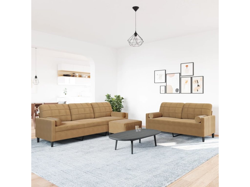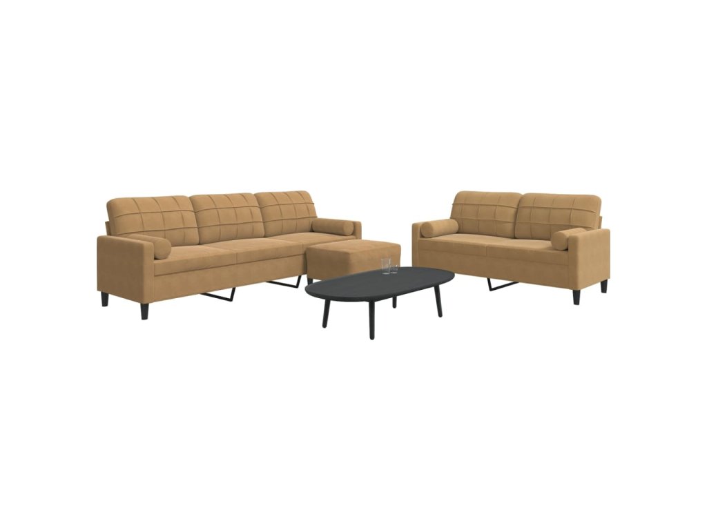 3dílná sedací souprava s poduškami a podhlavníky hnědá samet 3278508