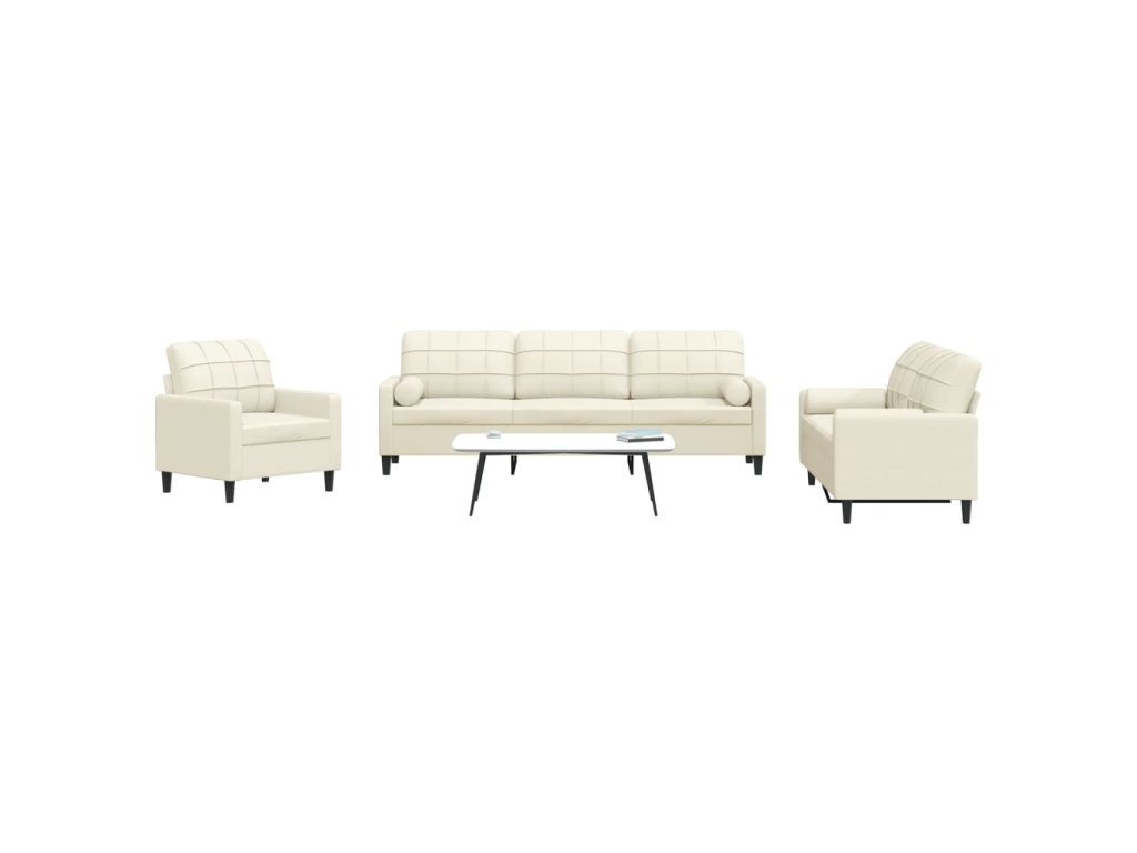 3dílná sedací souprava s poduškami a podhlavníky krémová samet 3278459