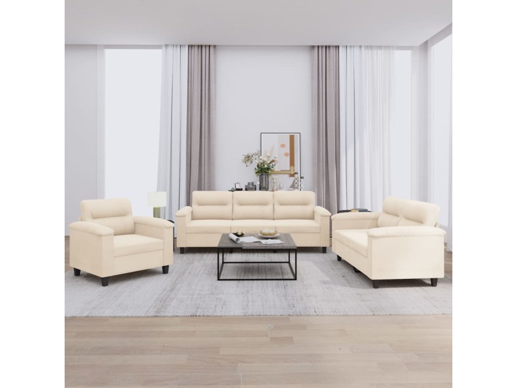 3dílná sedací souprava s poduškami béžová tkanina z mikrovlákna 3202295