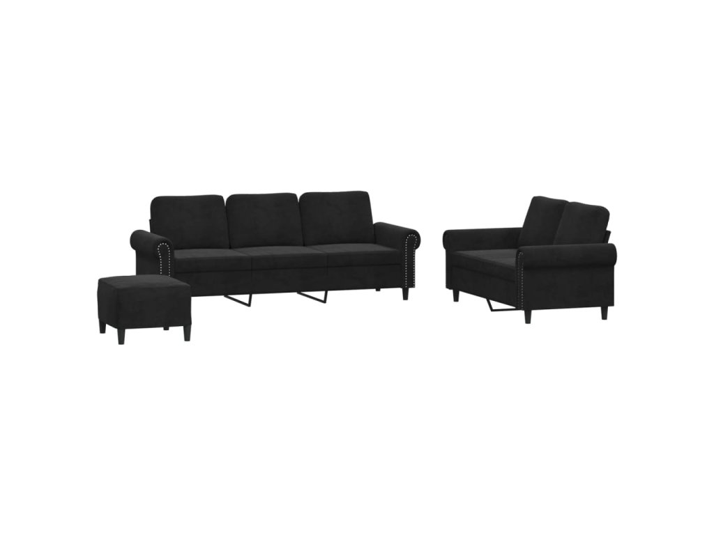 3dílná sedací souprava s poduškami černá samet 3202265