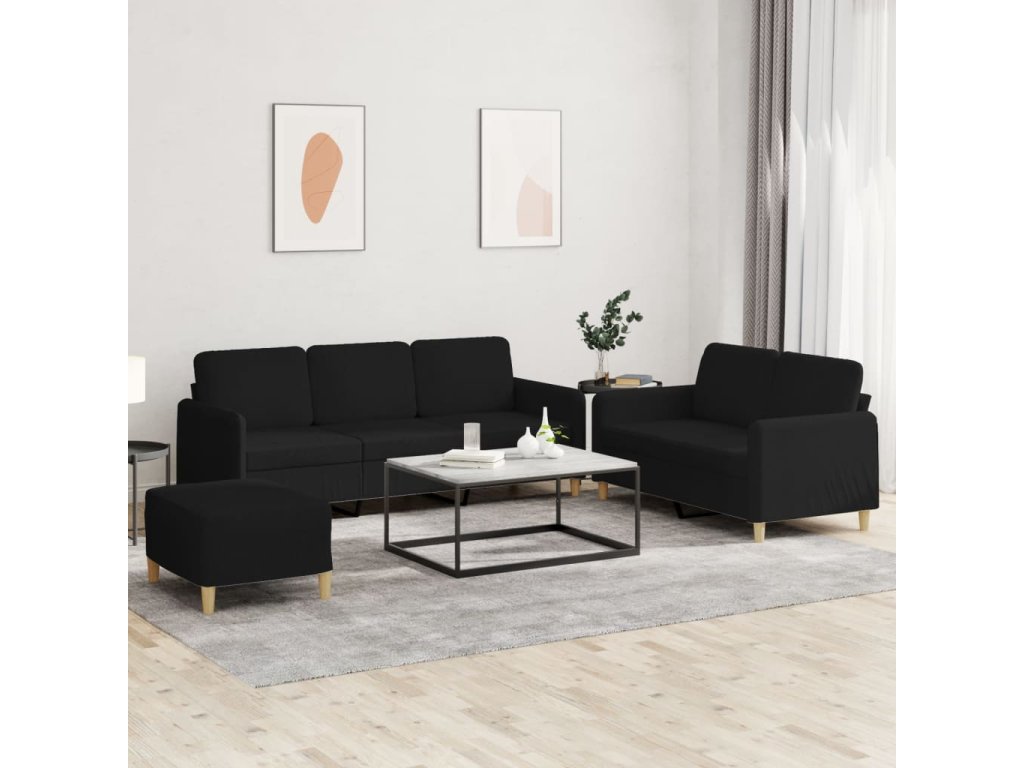 3dílná sedací souprava s poduškami černá textil 3202130