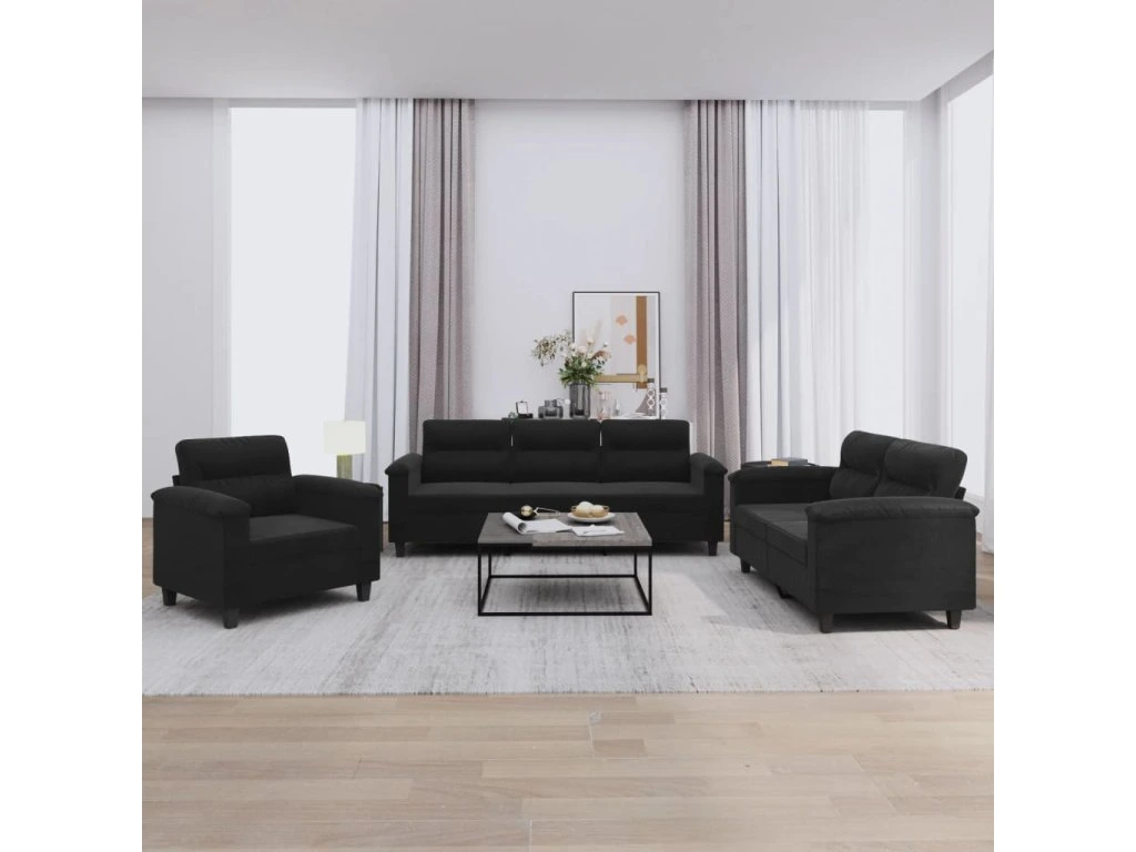 3dílná sedací souprava s poduškami černá tkanina z mikrovlákna 3202293