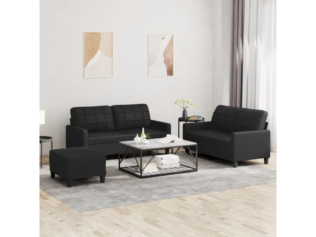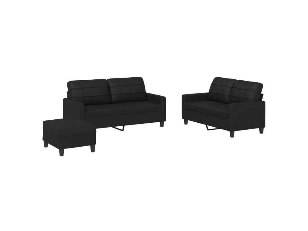 3dílná sedací souprava s poduškami černá umělá kůže 3201363