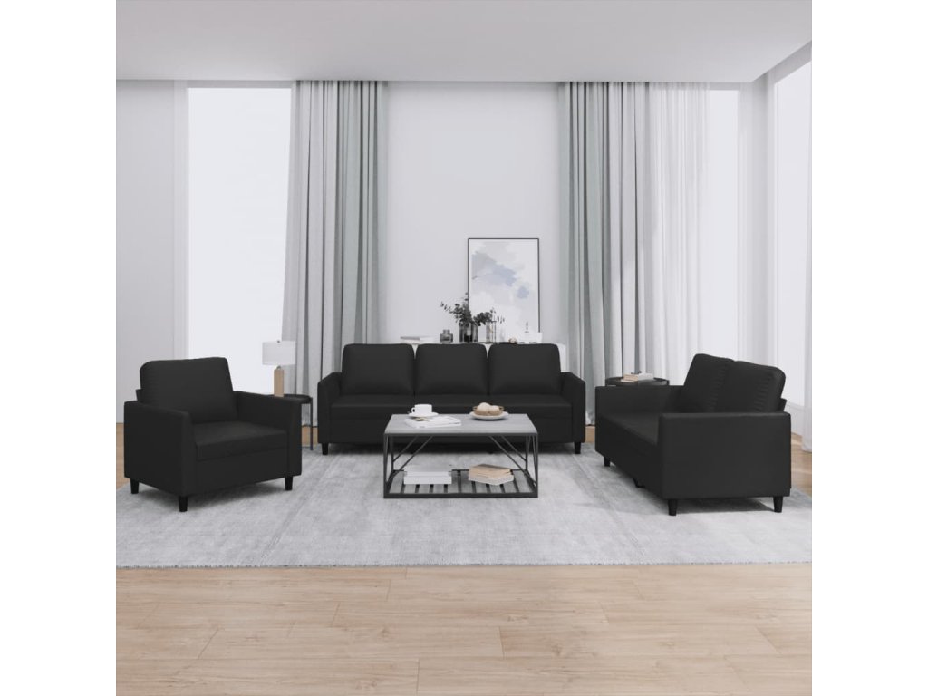 3dílná sedací souprava s poduškami černá umělá kůže 3201740