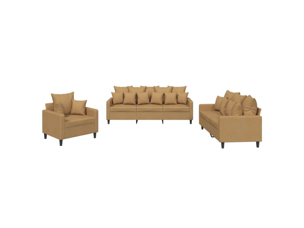 3dílná sedací souprava s poduškami hnědá samet 3201687