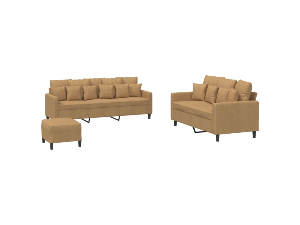 3dílná sedací souprava s poduškami hnědá samet 3201737
