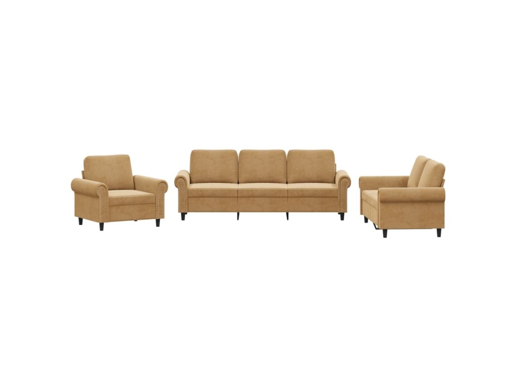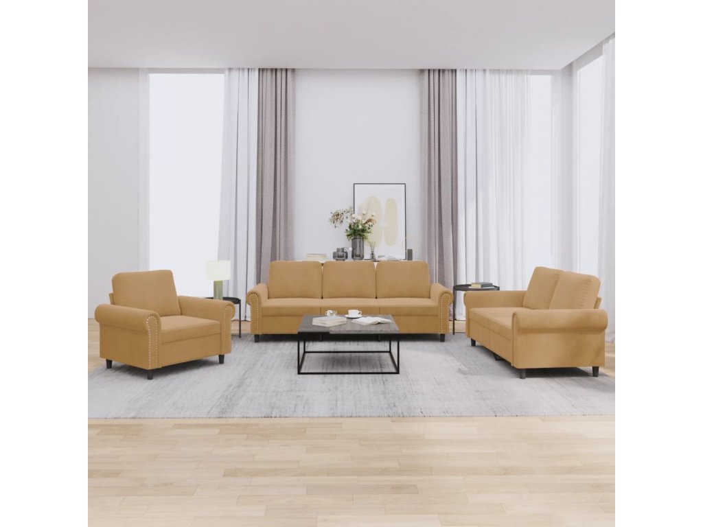 3dílná sedací souprava s poduškami hnědá samet 3202177