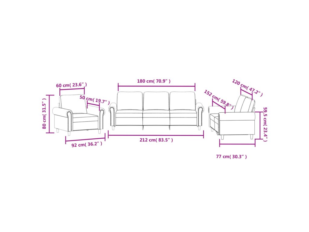 - Celkové rozměry: 212 x 77 x 80 cm (Š x H x V)