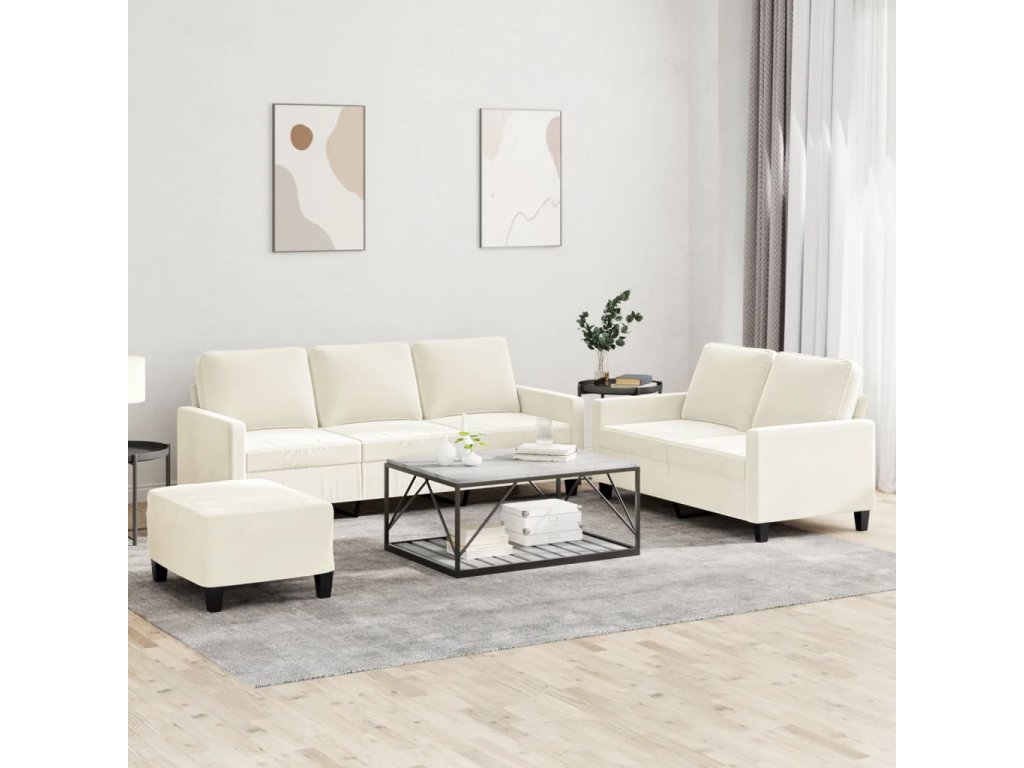 3dílná sedací souprava s poduškami krémová samet 3201534