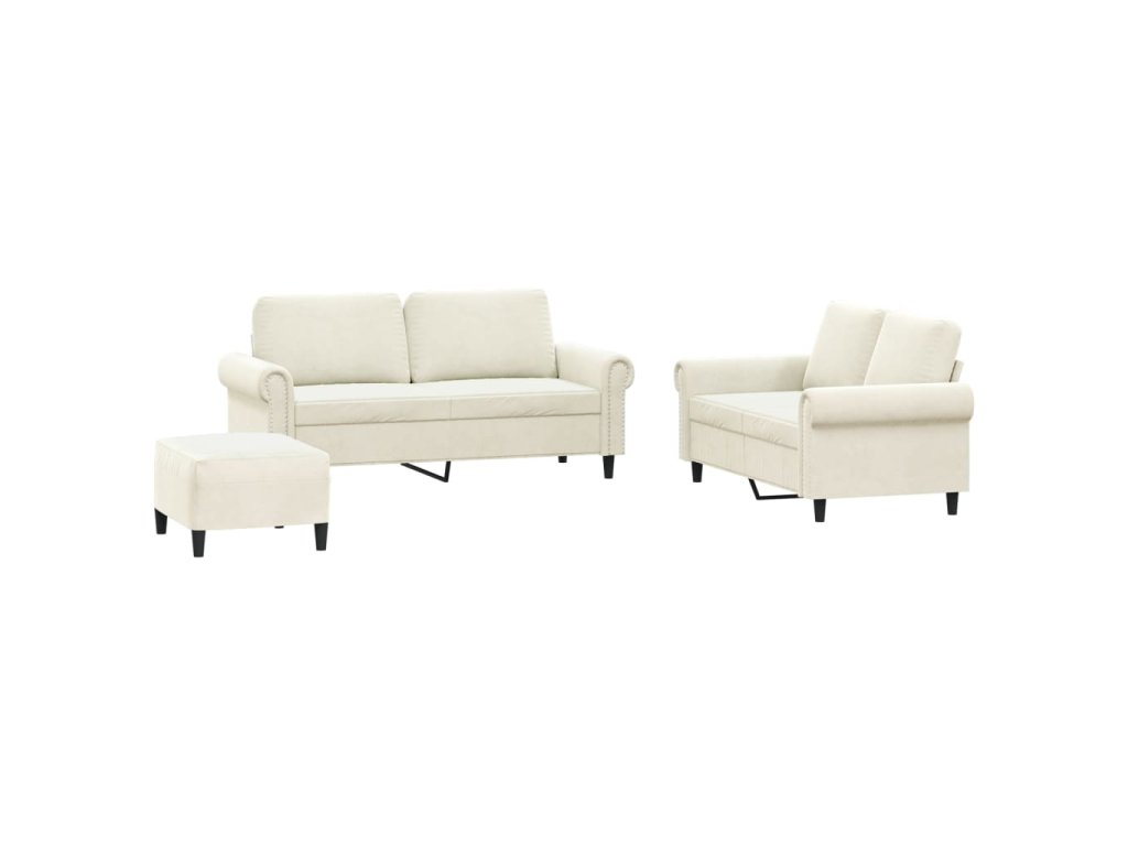 3dílná sedací souprava s poduškami krémová samet 3202228