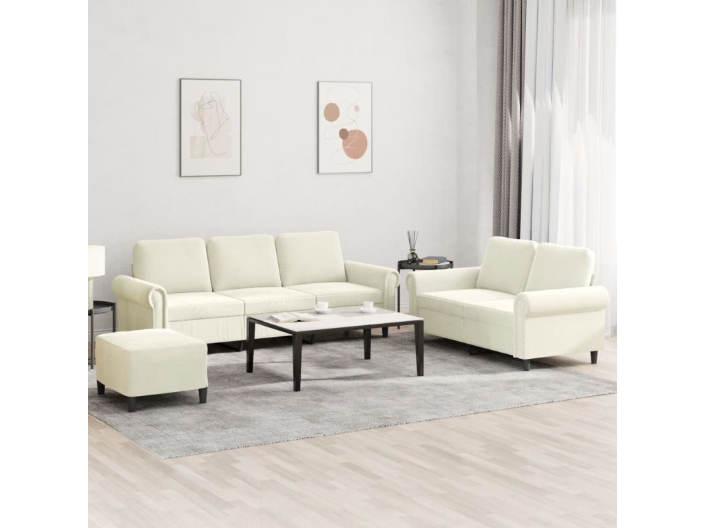 3dílná sedací souprava s poduškami krémová samet 3202268