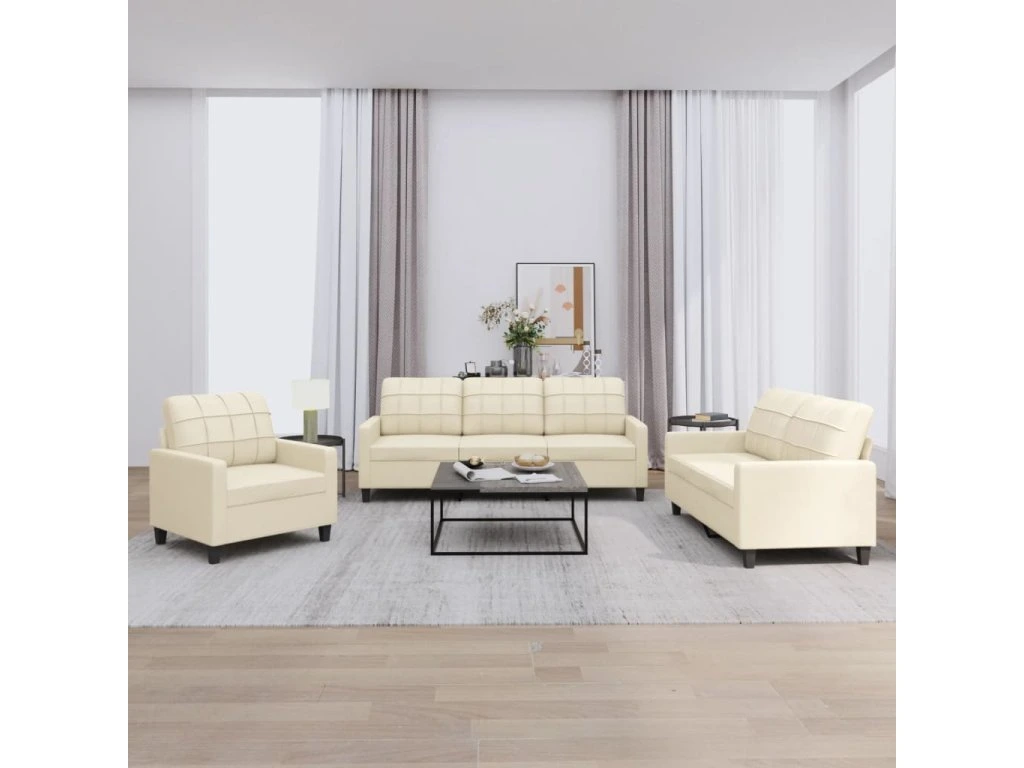 3dílná sedací souprava s poduškami krémová umělá kůže 3201339