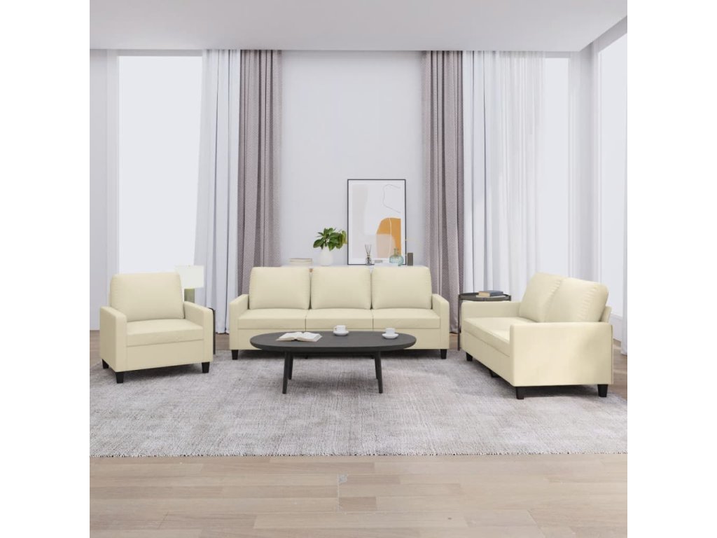 3dílná sedací souprava s poduškami krémová umělá kůže 3201399
