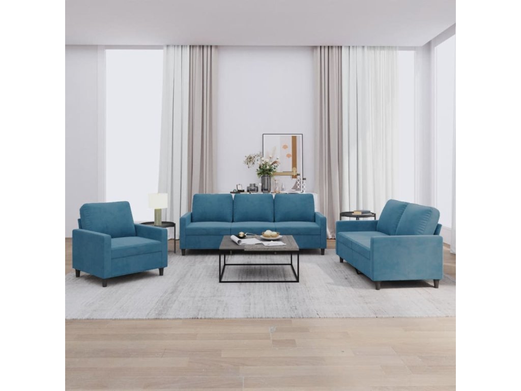 3dílná sedací souprava s poduškami modrá samet 3201485