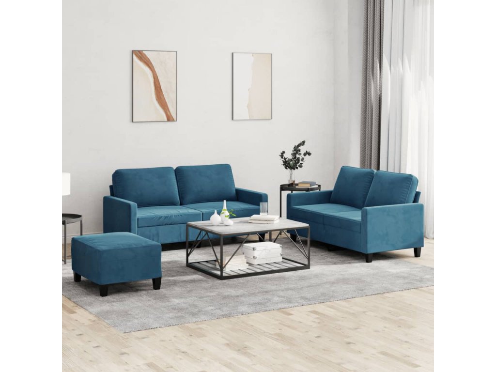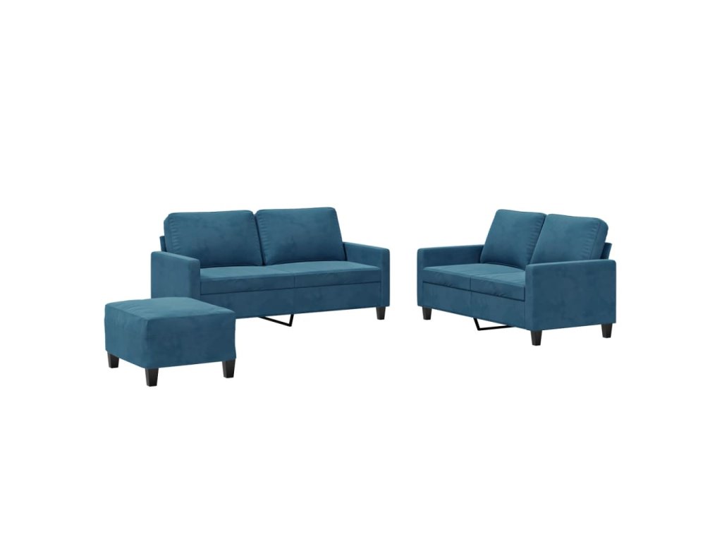 3dílná sedací souprava s poduškami modrá samet 3201515