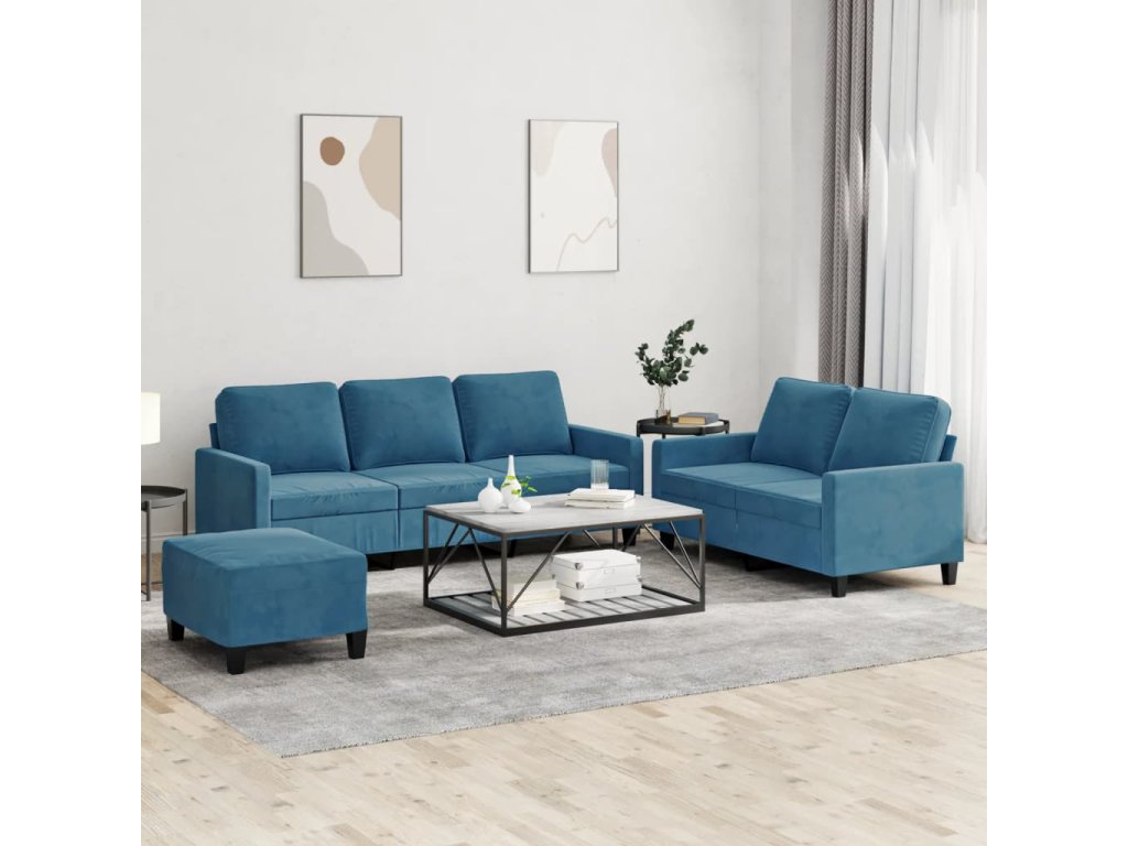 3dílná sedací souprava s poduškami modrá samet 3201535