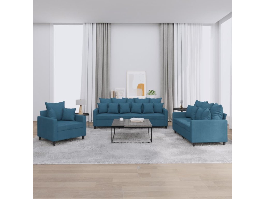 3dílná sedací souprava s poduškami modrá samet 3201689