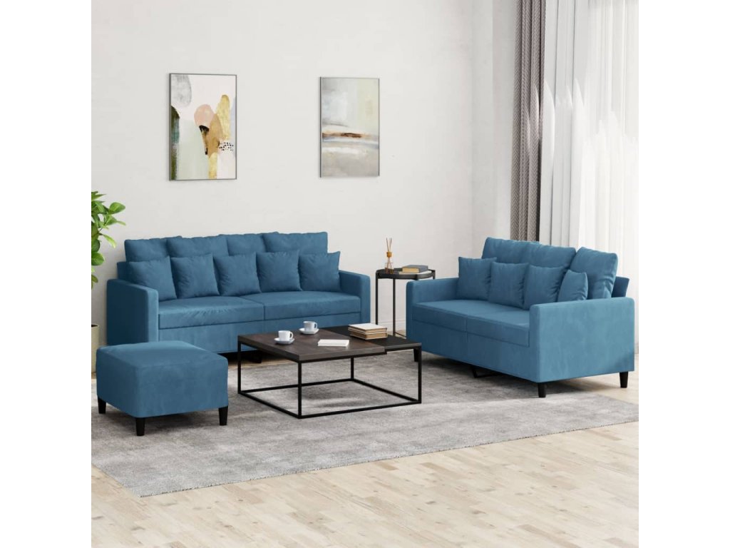 3dílná sedací souprava s poduškami modrá samet 3201719