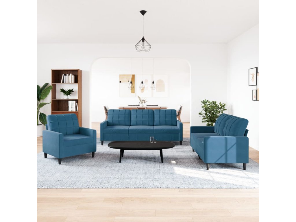 3dílná sedací souprava s poduškami modrá samet 3278360