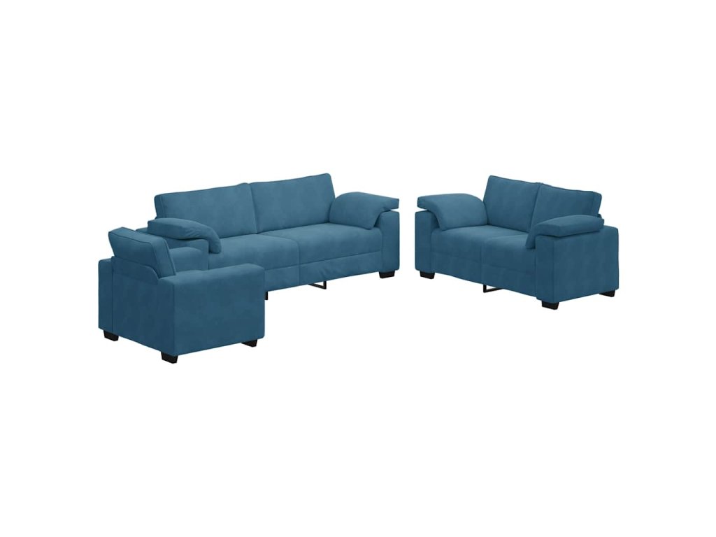 3dílná sedací souprava s poduškami modrá samet 3324676