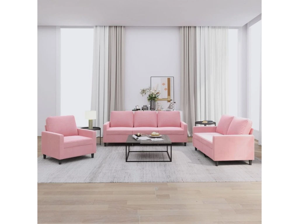 3dílná sedací souprava s poduškami růžová samet 3201479