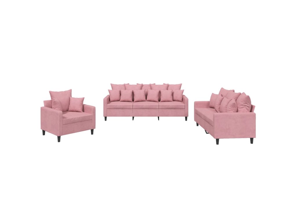 3dílná sedací souprava s poduškami růžová samet 3201683