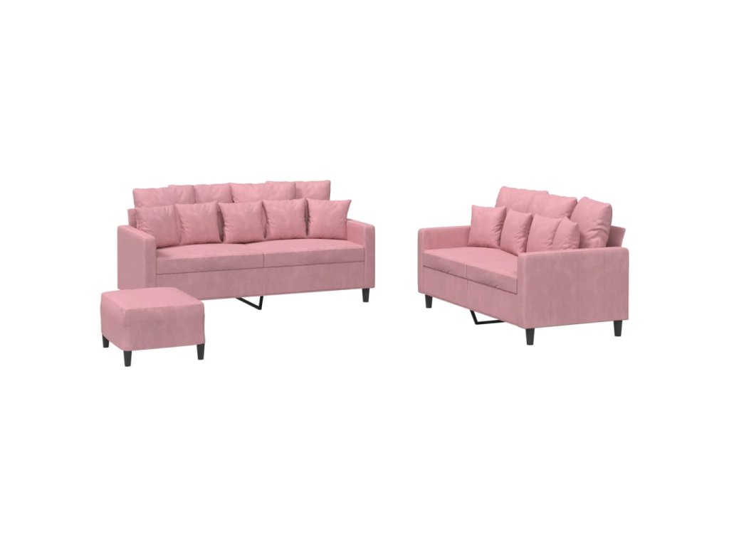 3dílná sedací souprava s poduškami růžová samet 3201713
