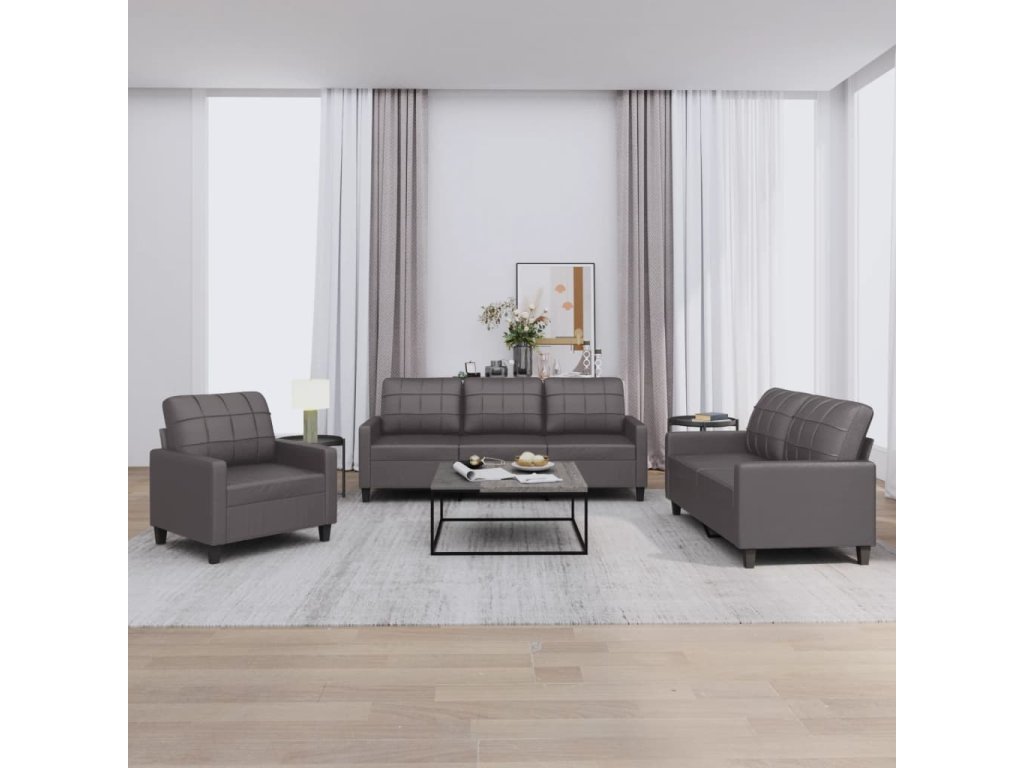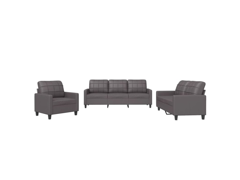 3dílná sedací souprava s poduškami šedá umělá kůže 3201340