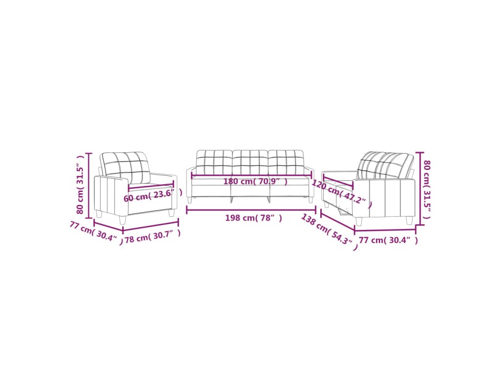 - Celkové rozměry: 198 x 77 x 80 cm (Š x H x V)