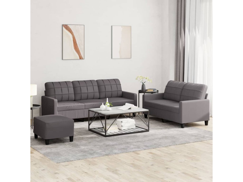 3dílná sedací souprava s poduškami šedá umělá kůže 3201385