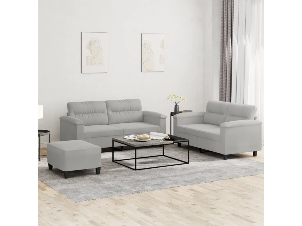 3dílná sedací souprava s poduškami světle šedá mikrovlákno 3202321
