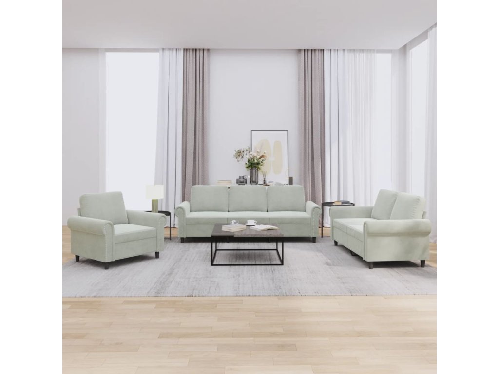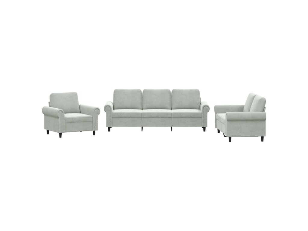 3dílná sedací souprava s poduškami světle šedá samet 3202170