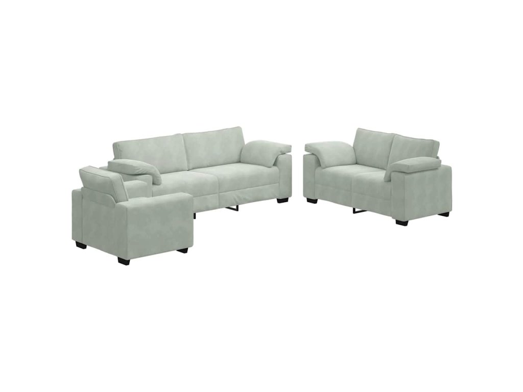 3dílná sedací souprava s poduškami světle šedá samet 3324667