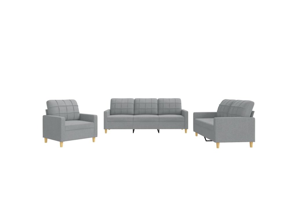 3dílná sedací souprava s poduškami světle šedá textil 3201242