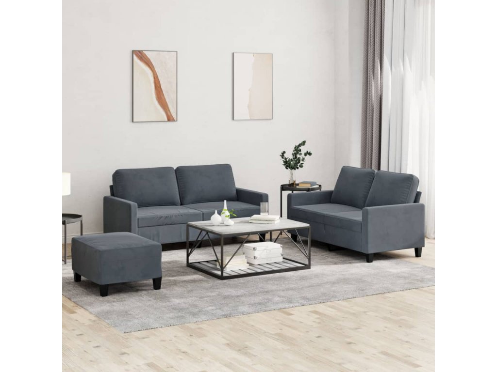 3dílná sedací souprava s poduškami tmavě šedá samet 3201507
