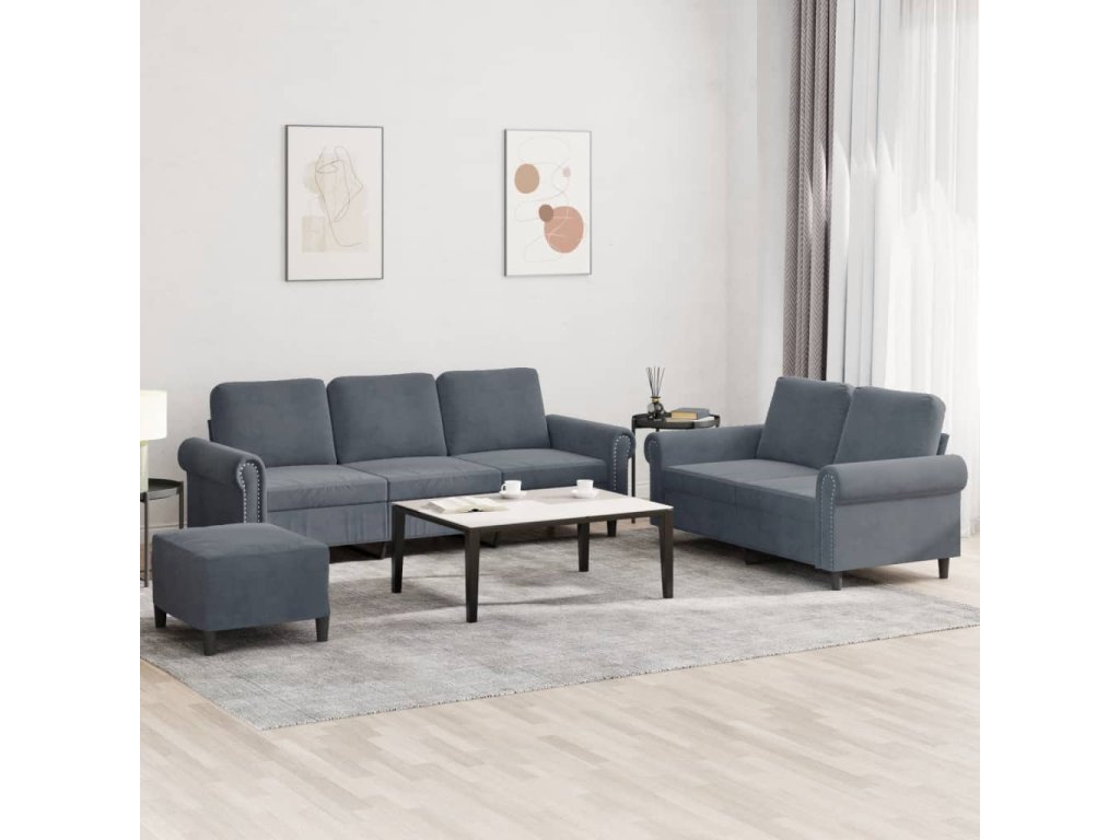 3dílná sedací souprava s poduškami tmavě šedá samet 3202261