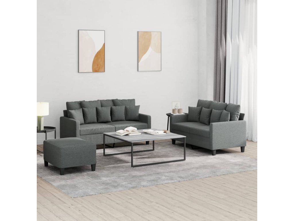 3dílná sedací souprava s poduškami tmavě šedá textil 3201657