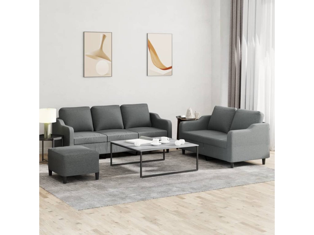3dílná sedací souprava s poduškami tmavě šedá textil 3201843