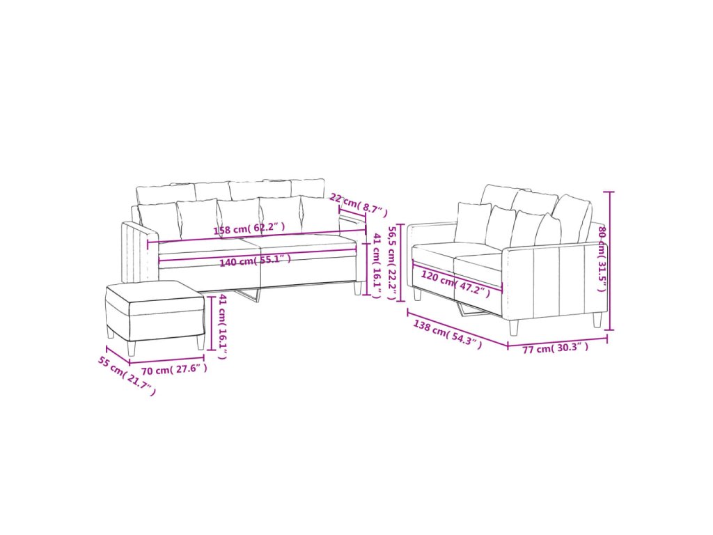 3dílná sedací souprava s podnožkou světle šedá textil 3278327
