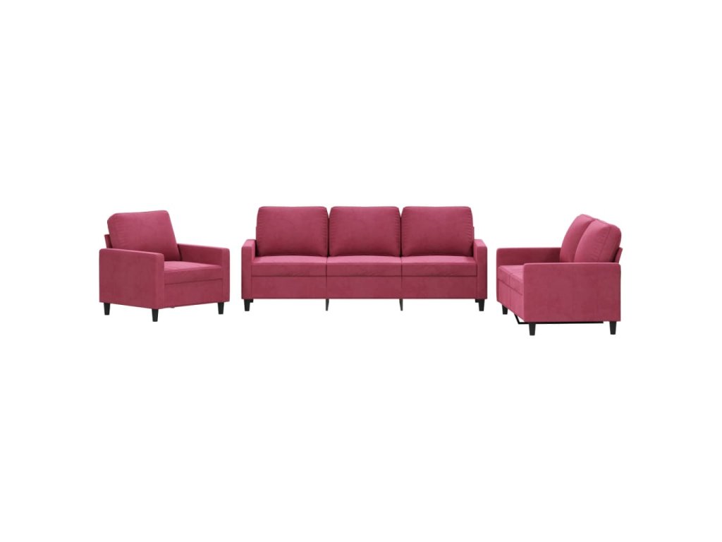 3dílná sedací souprava s poduškami vínová samet 3201480