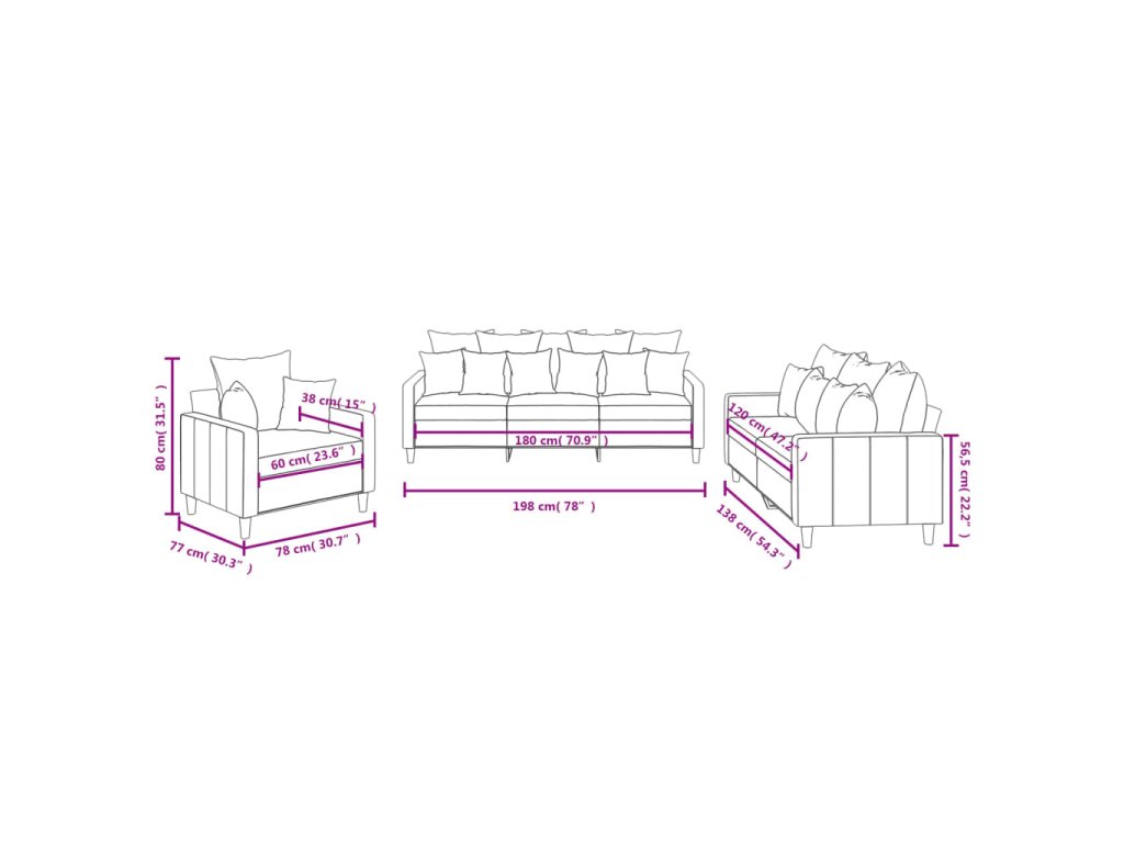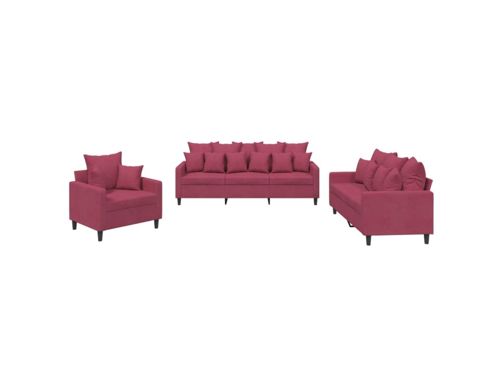3dílná sedací souprava s poduškami vínová samet 3201684