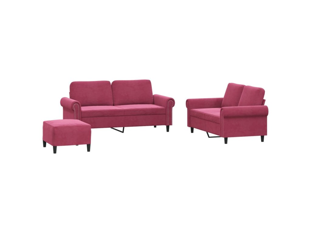 3dílná sedací souprava s poduškami vínová samet 3202224