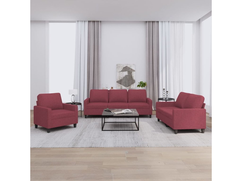 3dílná sedací souprava s poduškami vínová textil 3201434
