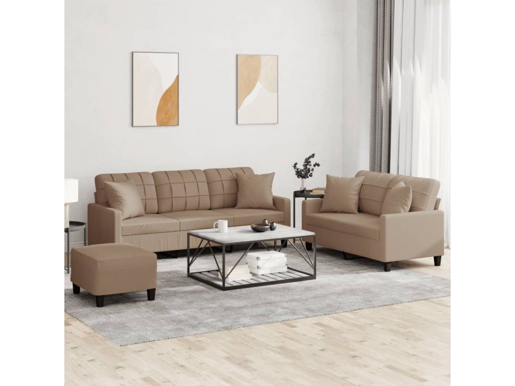 3dílná sedací souprava s polštáři cappuccino umělá kůže 3201397
