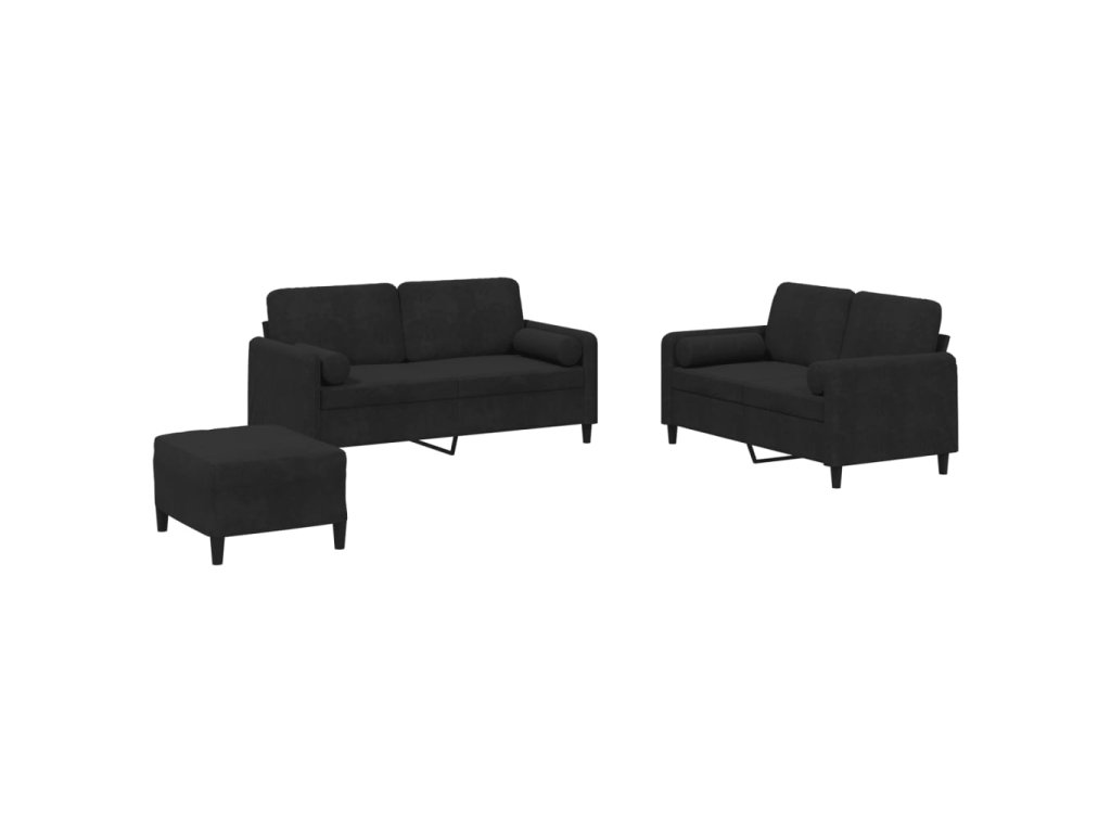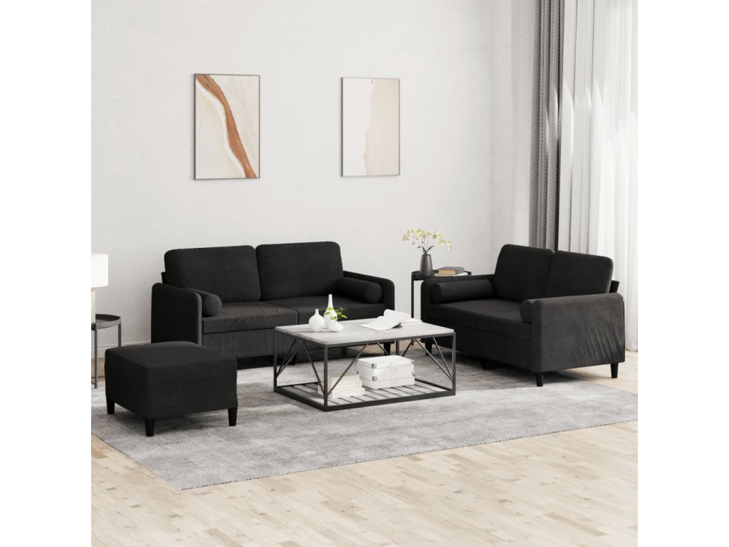 3dílná sedací souprava s polštáři černá samet 3202009