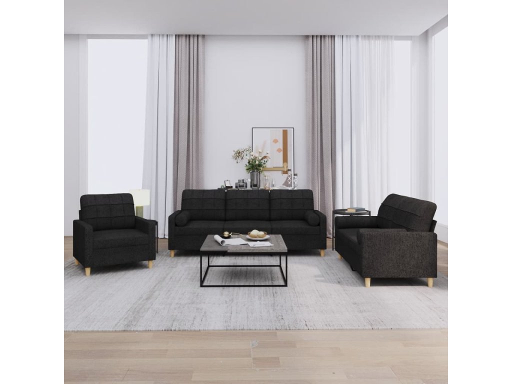 3dílná sedací souprava s polštáři černá textil 3201262