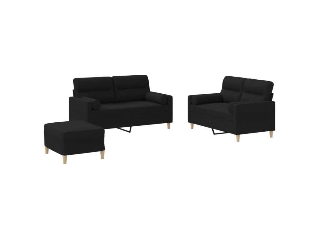 3dílná sedací souprava s polštáři černá textil 3201596