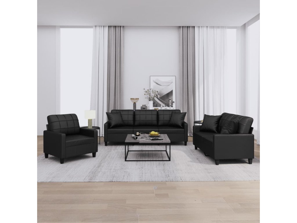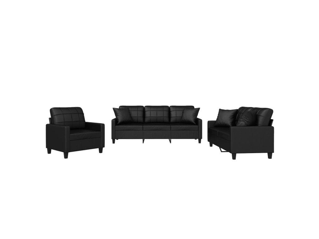 3dílná sedací souprava s polštáři černá umělá kůže 3201348