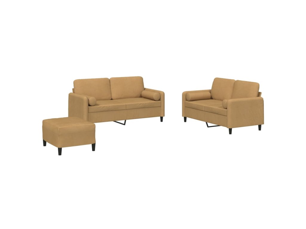 3dílná sedací souprava s polštáři hnědá samet 3202011