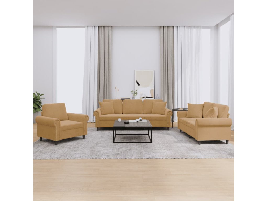 3dílná sedací souprava s polštáři hnědá samet 3202197